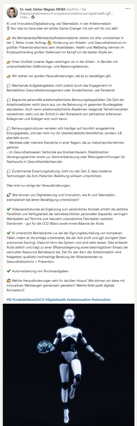 #KI #LinkedInNewsDACH #digitalhealth #arbeitsmedizin #telemedizin